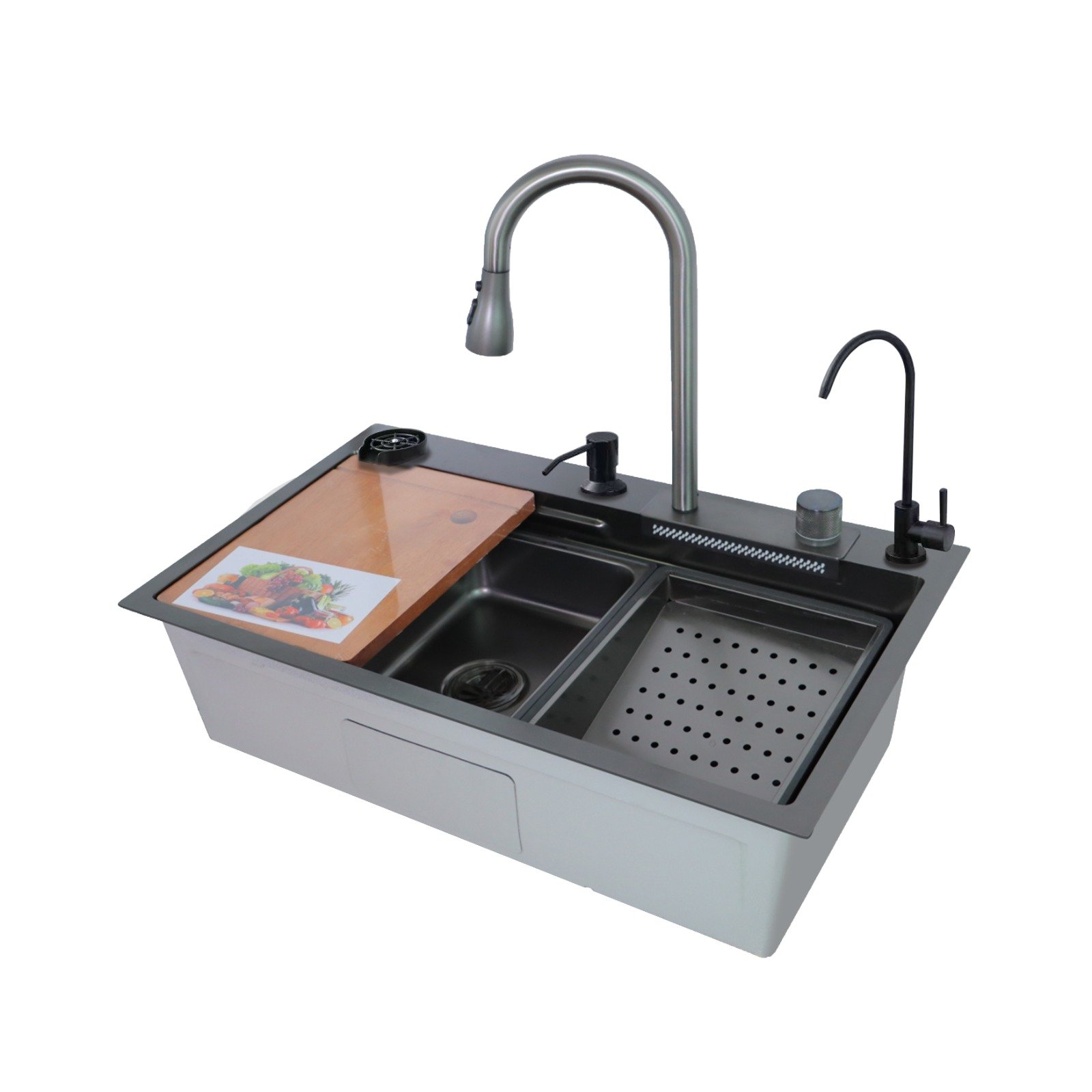 Juego completo de fregadero con accesorios y de acero inoxidable